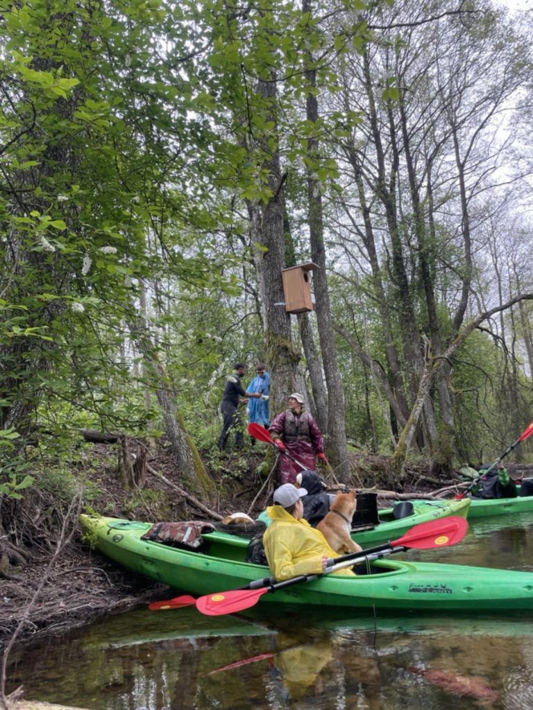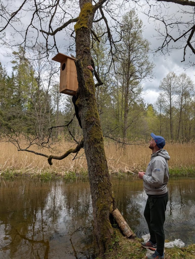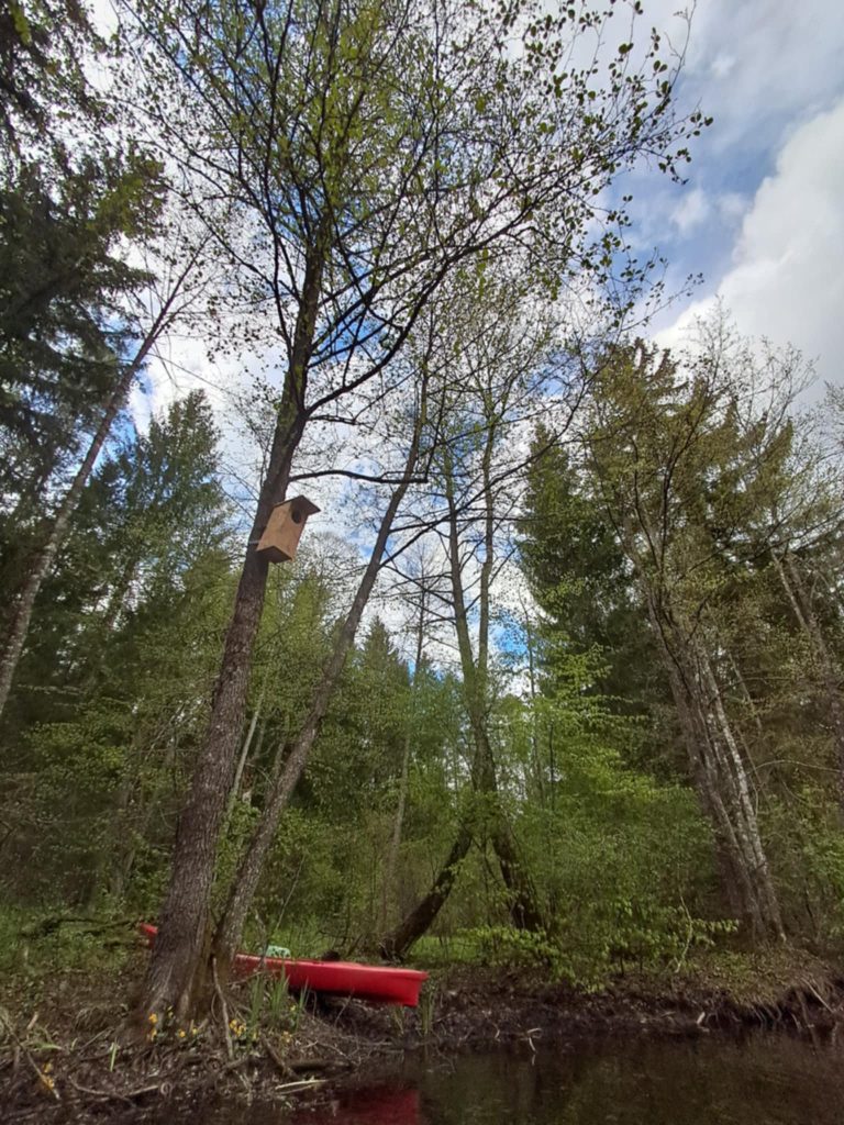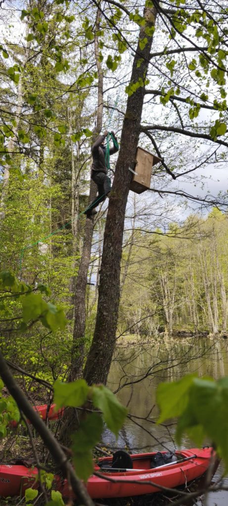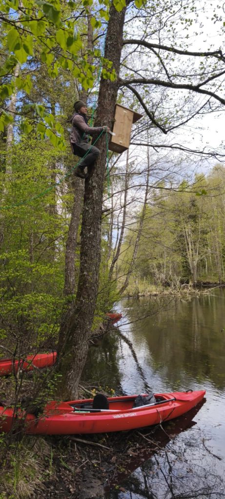 LKA Keliautojų klubo akcija „Baidarom“: iškelta 10 inkilų didiesiems dančiasnapiams