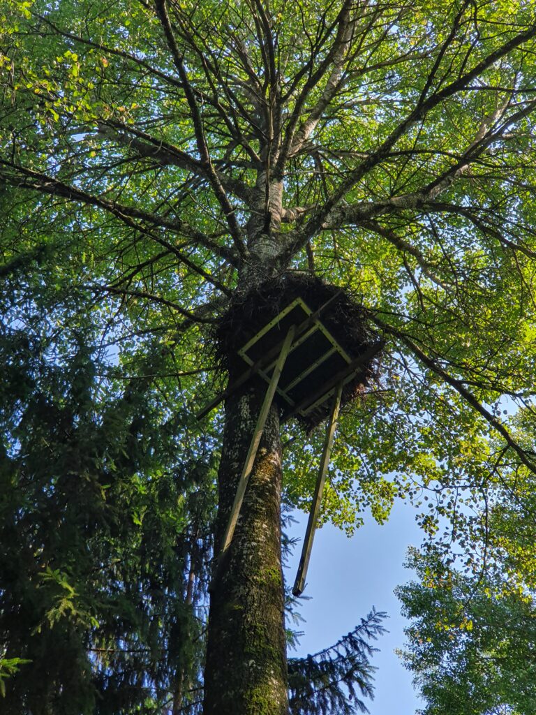 Vilniaus rajone juodajam gandrui (Ciconia nigra) įrengtas vienas lizdas ąžuole. Šioje teritorijoje ankstesnė natūrali lizdavietė buvo prarasta nulūžus šakai su visu lizdu, todėl naujas lizdas įrengtas saugesnėje vietoje. 2025 metais įvyko tragiškas įvykis – nulūžus ąžuolo šakai su natūraliu lizdu žuvo trys jaunikliai. Šiais metais juodasis gandras sugrįžo ir apsigyveno naujame dirbtiniame lizde, įrengtame ąžuole maždaug 80 metrų nuo buvusios lizdavietės.